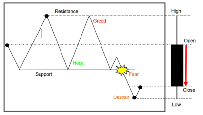 Market players are subject to a cycle of human emotions that is guided by their profit and loss performance (hope, greed and fear).