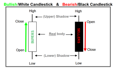 Bullish or White Candlestick: indicates that the session’s closing price was higher than the session’s opening price. This indicates that purchasers kept control and spent more time lobbying for higher prices.